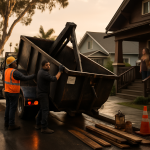 The rumble of the roll-off truck felt like a heartbeat returning to life — metallic, steady, a deep thud that traveled down the cracked asphalt of my little Culver City alley. I stood on the back stoop of a Spanish bungalow, the scent of sawdust and jasmine mixing with a faint ocean breeze drifting in from Santa Monica. Across the street, Mrs. Alvarez from down the block held a paper cup of coffee and watched the workers sling a tarp over an emerald green dumpster as if it were a sleeping beast to be tamed.