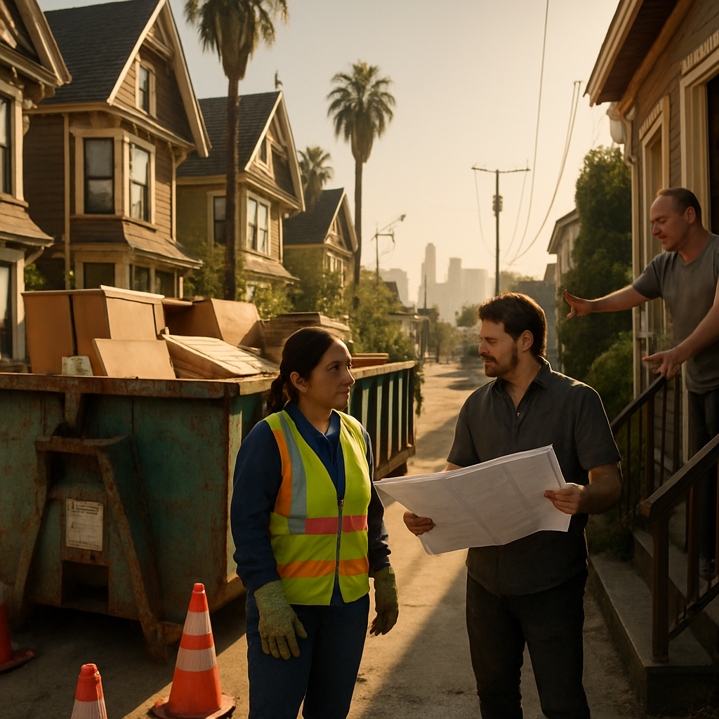 The characters in this small drama represented a wider ecosystem of Greater Los Angeles: homeowners in Pasadena deciding whether to keep antique cabinetry, contractors from Glendale juggling job schedules, city inspectors from LADOT and Bureau of Sanitation who handed out permits like municipal talismans. Long Beach crews, Venice contractors, and Malibu landscape teams all relied on the same choreography: order a dumpster, get it placed legally, fill it quickly, and remove it before it became an eyesore — or worse, a fine.