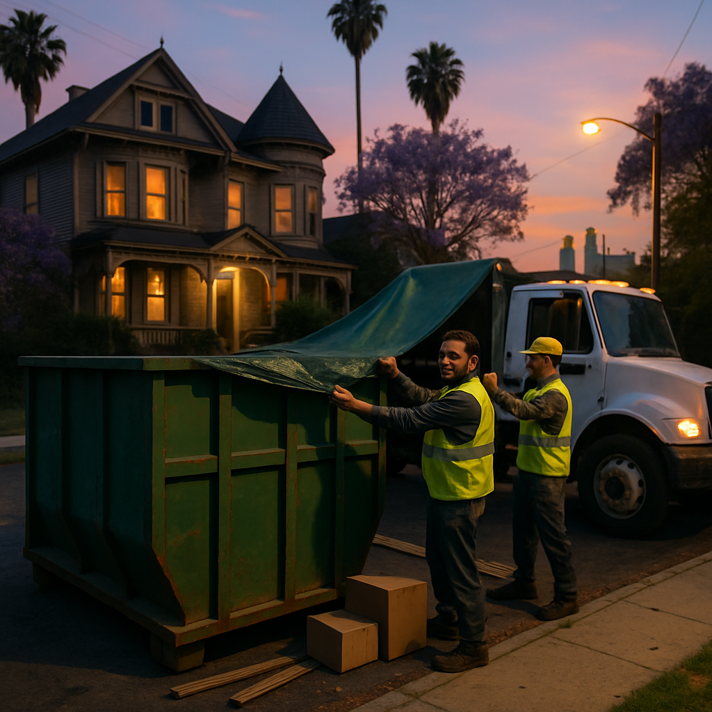 The final image stayed with her: the green dumpster, now clean and closed, reflected the sunset like a dark, patient monolith. Behind it, the Victorian’s windows glowed with new light—curtains pulled aside as if to wink at the future. In Los Angeles, where change is as constant as traffic, sometimes the simplest act—removing the old to make way for the new—feels like a small, quiet victory. When the dumpster’s lock clicked shut for the last time that evening, it wasn’t an ending so much as the city’s practiced exhale: organized, messy, hopeful, and already moving on.